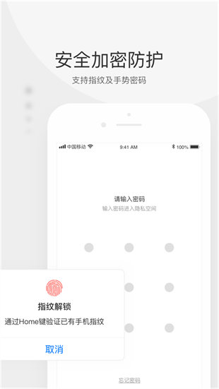 3、安全加密防護(hù),支持指紋及手勢(shì)密碼