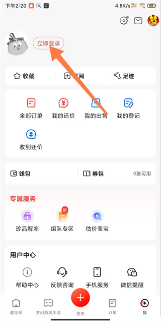 2、在個(gè)人中心界面,點(diǎn)擊立即登錄區(qū)域,進(jìn)入賬號(hào)登錄頁面。