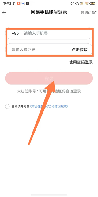 4、輸入手機(jī)號(hào)和驗(yàn)證碼,勾選已閱讀并同意相關(guān)協(xié)議后,點(diǎn)擊登錄按鈕完成登錄操作。