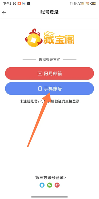 3、在賬號(hào)登錄頁面,點(diǎn)擊手機(jī)賬號(hào)選項(xiàng),進(jìn)入網(wǎng)易手機(jī)賬號(hào)登錄頁面。