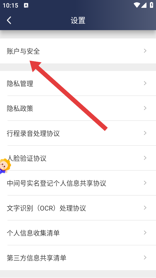 2、在個人賬戶設置頁面中,找到并點擊賬戶與安全的選項,進入賬號安全相關設置界面。