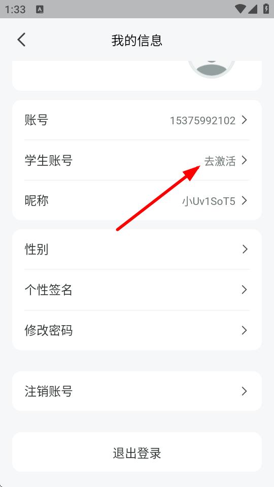 3、在我的信息頁面中,找到學(xué)生賬號(hào)選項(xiàng),點(diǎn)擊右側(cè)的去激活按鈕。