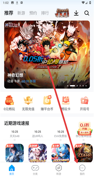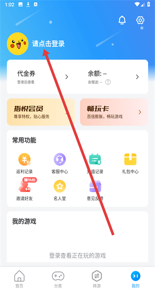 1、在游戲平臺主界面點(diǎn)擊右下角“我的”,進(jìn)入個(gè)人頁面。