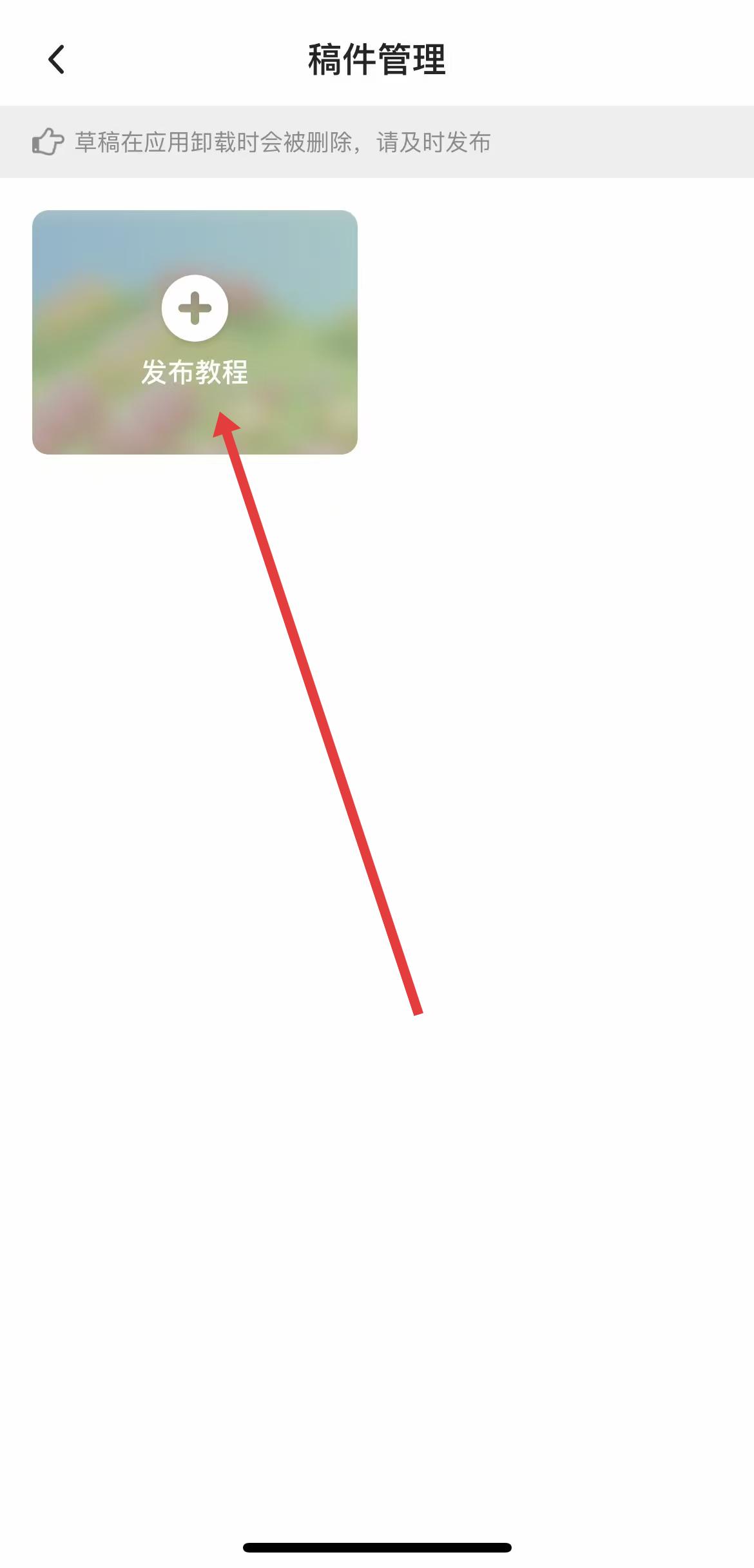 3、進(jìn)入稿件管理頁面后,點(diǎn)擊發(fā)布教程,就可以進(jìn)行作品投稿,上傳你制作的稿件。