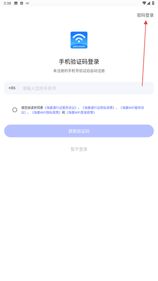 2、若未登錄,進(jìn)入時會呈現(xiàn)登錄的頁面,點擊右上角密碼登錄。