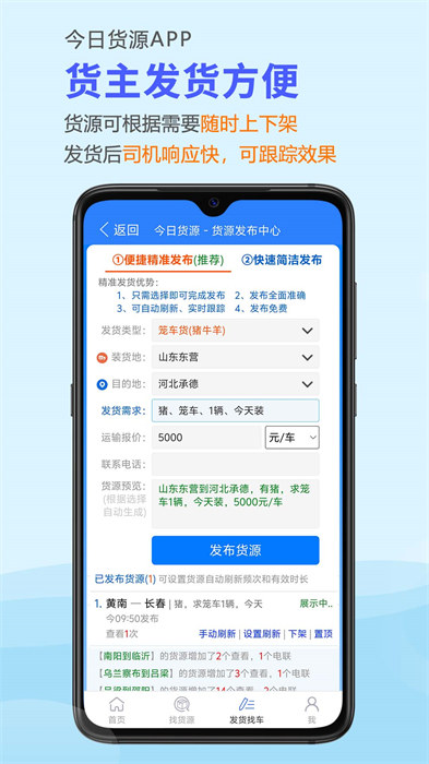 1、【司機(jī)找貨】 今日貨源app每日千萬條及時更新,貨車司機(jī)空車配貨操作簡單,降低司機(jī)返程車、回頭車的空返率,是司機(jī)找貨值得信賴的物流配貨平臺。