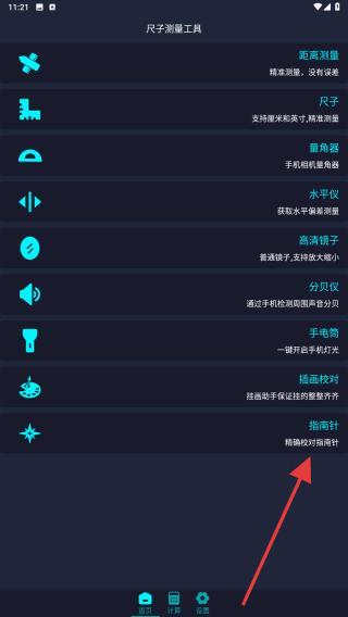 2、進(jìn)入到首頁(yè)內(nèi),點(diǎn)擊指南針的功能按鈕。