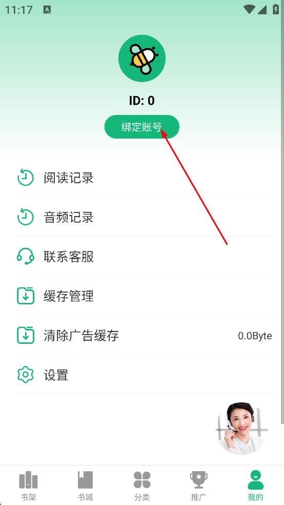 3、在個人中心頁面,點擊“綁定賬號”,進入到登錄頁面。