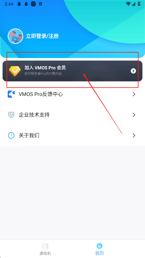 2、切換到我的頁(yè)面,能看到加入VMOS Pro會(huì)員選項(xiàng),點(diǎn)擊該選項(xiàng),可了解會(huì)員權(quán)益,如解鎖付費(fèi)內(nèi)容等,根據(jù)需求選擇是否開通會(huì)員。