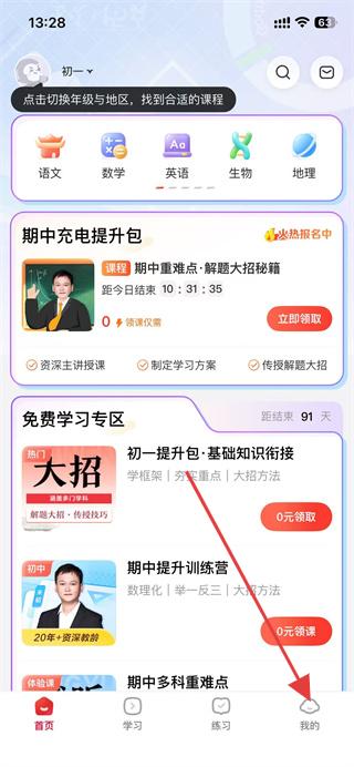 1、打開希望學(xué)app,點(diǎn)擊底部導(dǎo)航欄的我的選項(xiàng)。