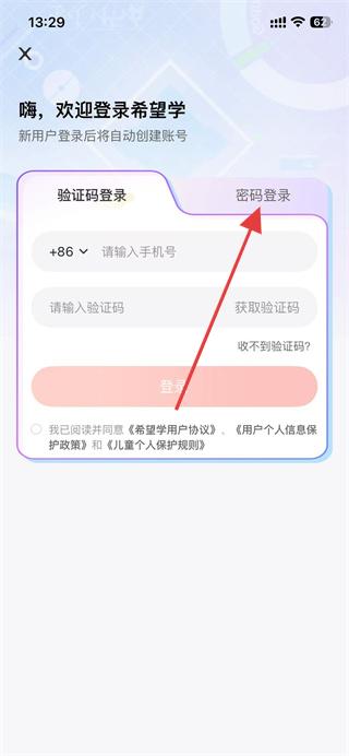 3、在登錄頁面中,選擇并點(diǎn)擊上方密碼登錄選項(xiàng)。