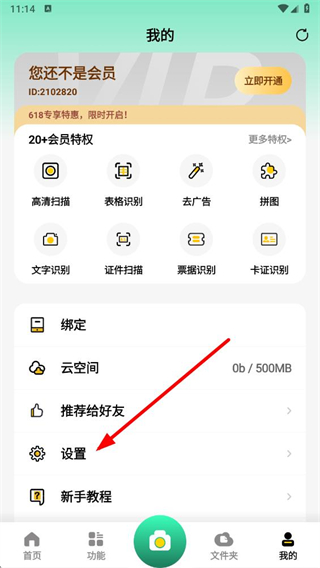 1、打開(kāi)極速掃描儀app,點(diǎn)擊底部導(dǎo)航欄中的我的選項(xiàng),進(jìn)入個(gè)人相關(guān)頁(yè)面。