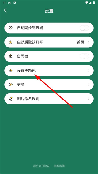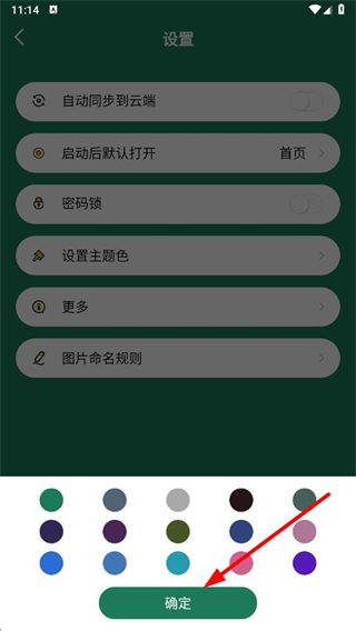 3、在設(shè)置界面中,點(diǎn)擊設(shè)置主題色選項(xiàng),彈出主題色選擇面板。