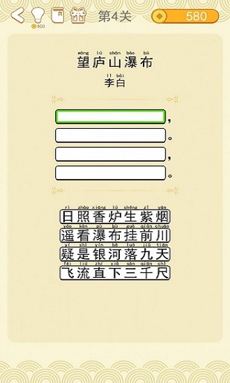 1.各個關(guān)卡中你需要從一堆隨機分布的漢字中畫線找出對應(yīng)的詩詞,不管是橫著連線還是豎著連線。
