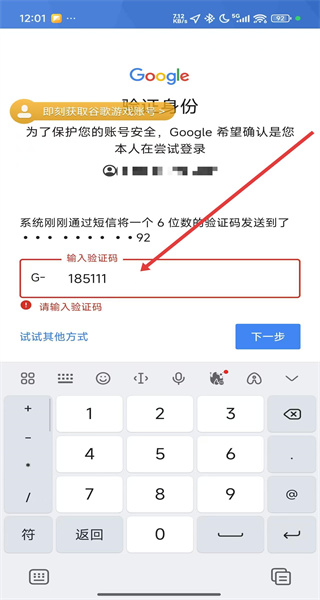 3、選擇手機號登錄驗證方式,獲取并在對應輸入框中填入6位數(shù)驗證碼。