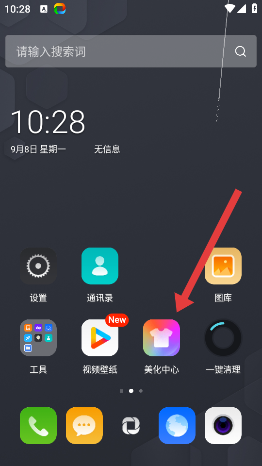 1、打開(kāi)360安全桌面,在主屏幕上點(diǎn)擊美化中心的圖標(biāo),進(jìn)入美化功能頁(yè)面。