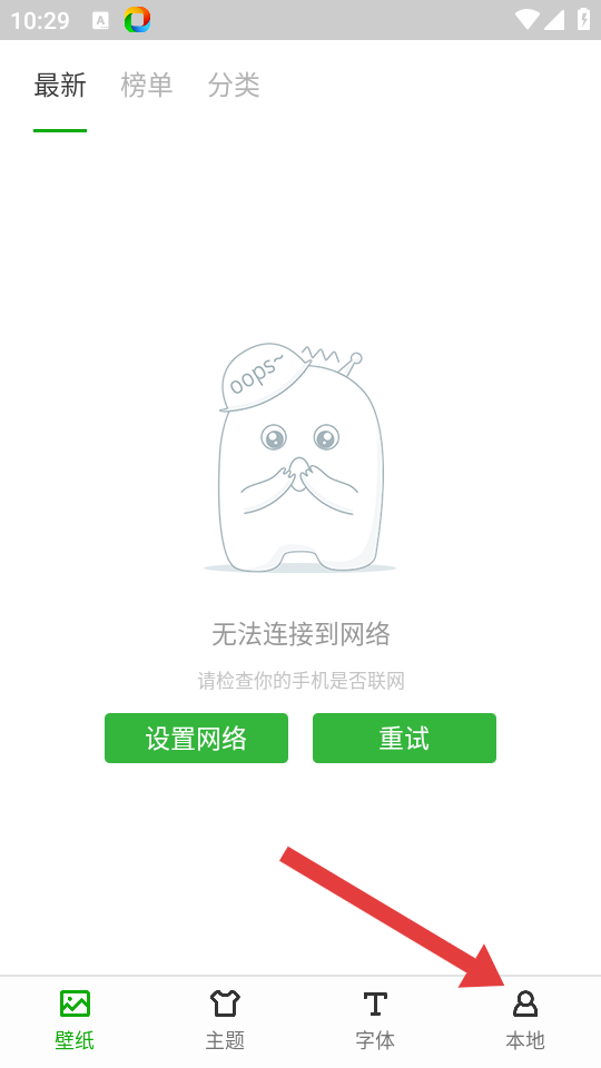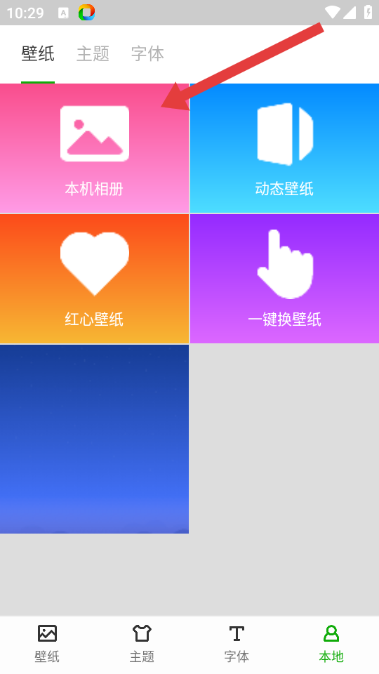 2、在美化中心頁(yè)面,點(diǎn)擊底部導(dǎo)航欄的本地選項(xiàng),切換到本地壁紙?jiān)O(shè)置界面。