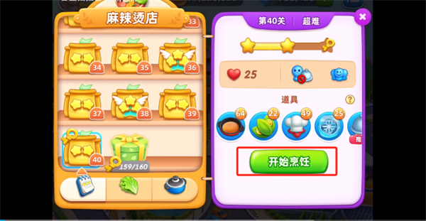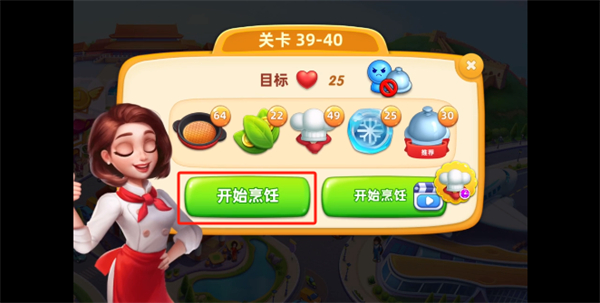 2、此時(shí)玩家將需要選擇自己想要挑戰(zhàn)的關(guān)卡 以及點(diǎn)擊,選擇好之后就需要點(diǎn)擊屏幕右下角的【開始烹飪】按鈕;