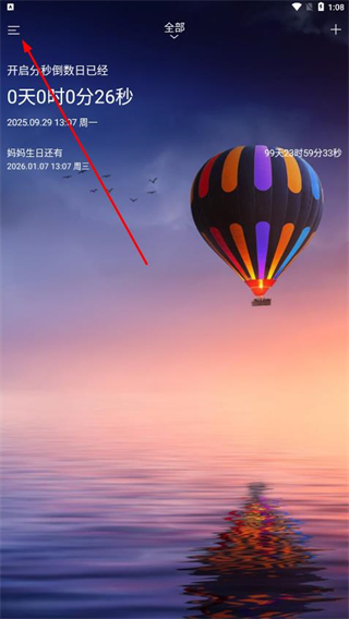 1、打開分秒倒數(shù)日,點(diǎn)擊左上角三條橫線的菜單圖標(biāo)。