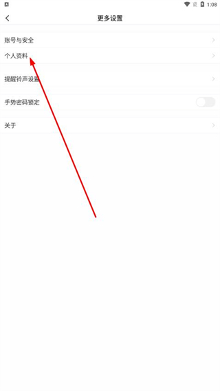 3、進(jìn)入更多設(shè)置頁面后,找到并點(diǎn)擊個(gè)人資料選項(xiàng)。