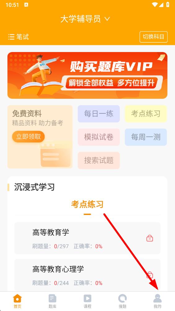 1、打開優(yōu)題寶app,點(diǎn)擊底部導(dǎo)航欄中我的選項(xiàng),進(jìn)入個(gè)人相關(guān)界面。