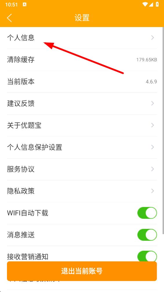 3、在設(shè)置頁面里,點(diǎn)擊個(gè)人信息選項(xiàng),進(jìn)入賬號(hào)信息界面。