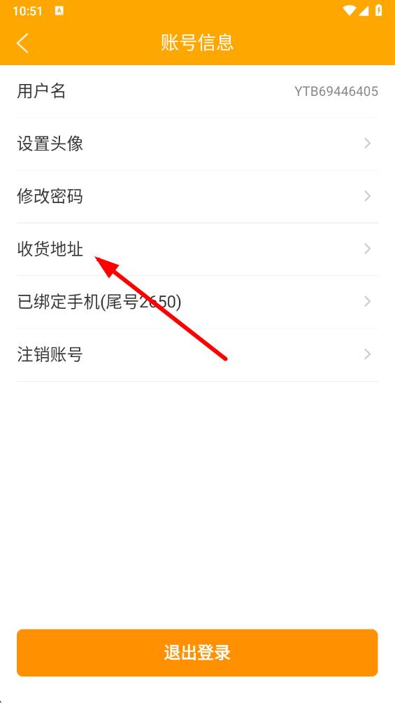 4、在賬號(hào)信息界面中,點(diǎn)擊收貨地址選項(xiàng),進(jìn)入收貨地址管理頁面。