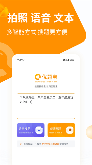 優(yōu)題寶支持文字、語音和拍照搜索,方便好用,效率及體驗(yàn)感都不錯(cuò)