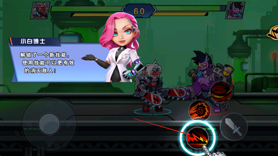 2、戰(zhàn)斗中解鎖新技能后,看到技能釋放按鈕,點(diǎn)擊該按鈕,使用新技能,能更有效地消滅敵人,提升戰(zhàn)斗效率。