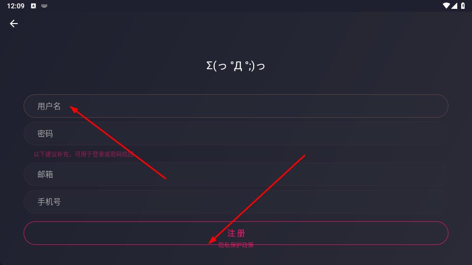 2、在注冊頁面,依次填寫用戶名,密碼,可選填郵箱、手機(jī)號標(biāo)注建議補(bǔ)充,用于登錄或密碼找回。