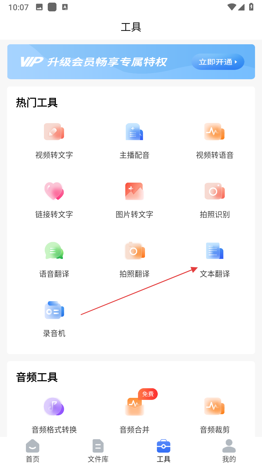 2、在工具頁(yè)面的熱門工具區(qū)域,找到并點(diǎn)擊文本翻譯選項(xiàng),進(jìn)入文本翻譯界面。
