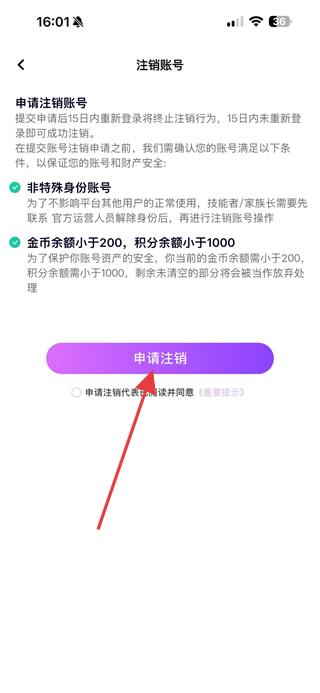 4、在注銷賬號頁面勾選同意相關(guān)說明后,點擊申請注銷,即可提交聲吧賬號的注銷申請。