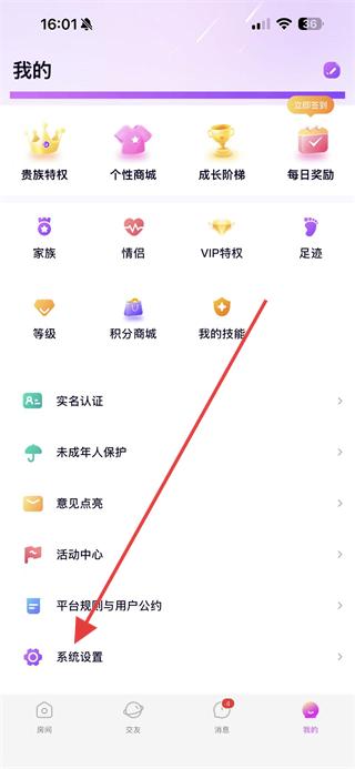 2、在個人頁面找到系統(tǒng)設(shè)置選項并點擊,進(jìn)入設(shè)置功能列表頁面。