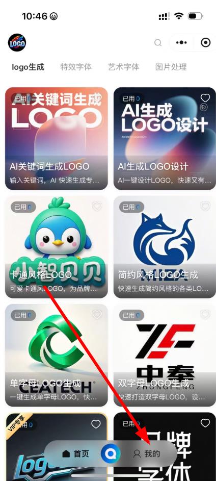 1、打開一鍵logo設計應用,進入主界面后點擊底部導航欄中的我的。