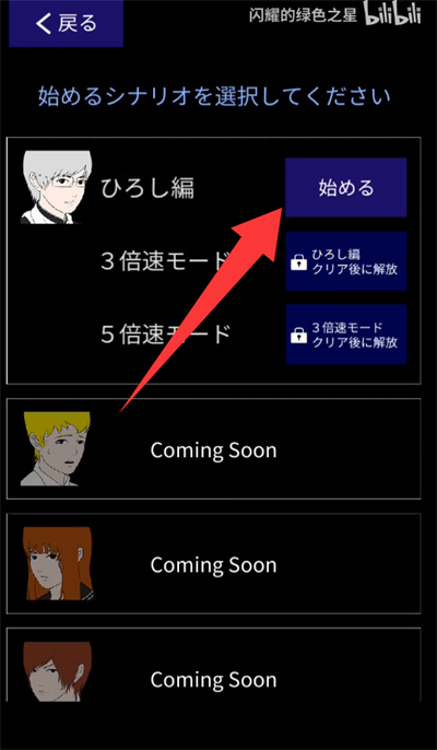 2、之后進入角色選擇界面,這里有好幾個角色可以選擇,開始只有一個初始角色可以使用,點擊開始;