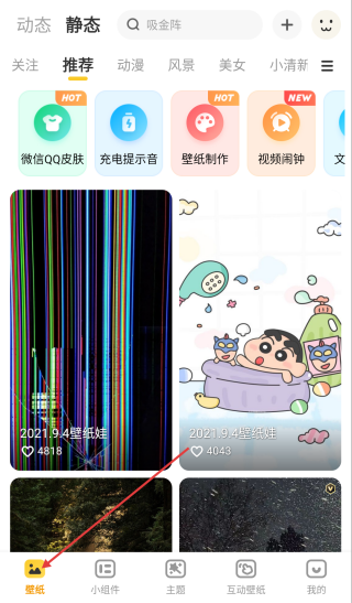 1、打開(kāi)元?dú)獗诩垜?yīng)用點(diǎn)擊底部壁紙進(jìn)入壁紙瀏覽界面,這是設(shè)置鎖屏壁紙的關(guān)鍵操作,確保能開(kāi)始選擇流程。