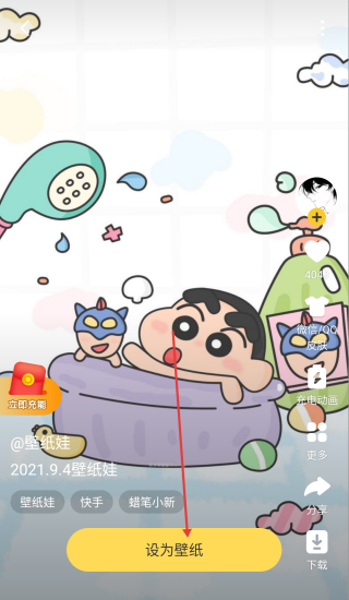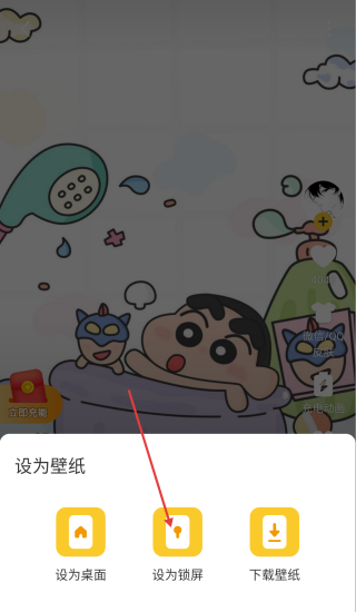 3、在壁紙?jiān)斍轫?yè)點(diǎn)擊設(shè)為壁紙按鈕,在彈出選項(xiàng)中點(diǎn)擊設(shè)為鎖屏,即可將所選壁紙?jiān)O(shè)置為手機(jī)鎖屏壁紙。