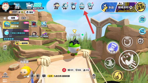 1、進(jìn)入蛋仔派對游戲主界面,點(diǎn)擊上方的商城圖標(biāo)。