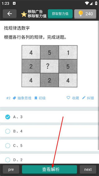 3、進入關(guān)卡后,找到并點擊下方的查看解析按鈕。