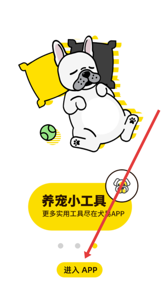2、在養(yǎng)寵小工具引導(dǎo)界面,可以通過點(diǎn)擊底部黃色進(jìn)入APP按鈕,進(jìn)入軟件登錄頁面。