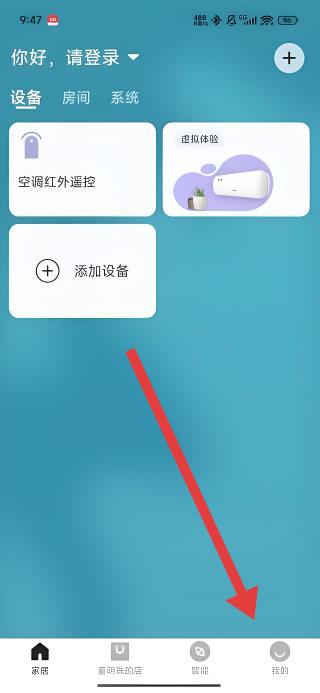 2、進(jìn)入設(shè)備界面后,點(diǎn)擊底部導(dǎo)航欄右下角的我的,切換至個人中心頁面,查看賬號相關(guān)功能。