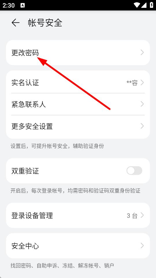 4、進入帳號安全頁面后,點擊更改密碼,按照后續(xù)提示完成密碼修改操作。
