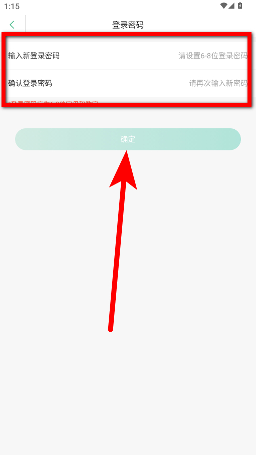 4、在登錄密碼頁(yè)面,輸入新登錄密碼并確認(rèn),然后點(diǎn)擊確定,即可完成登錄密碼設(shè)置。