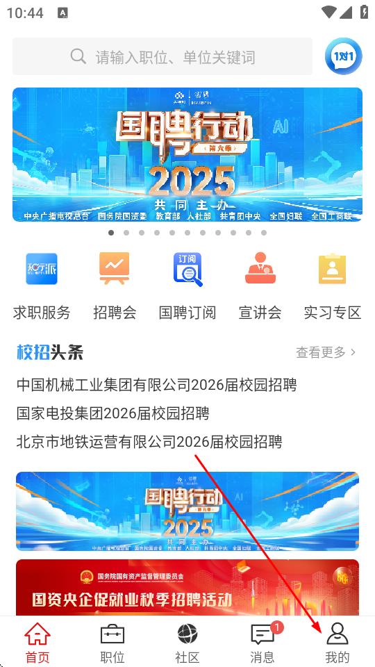 1、打開國聘APP,點擊底部導(dǎo)航欄中的我的。