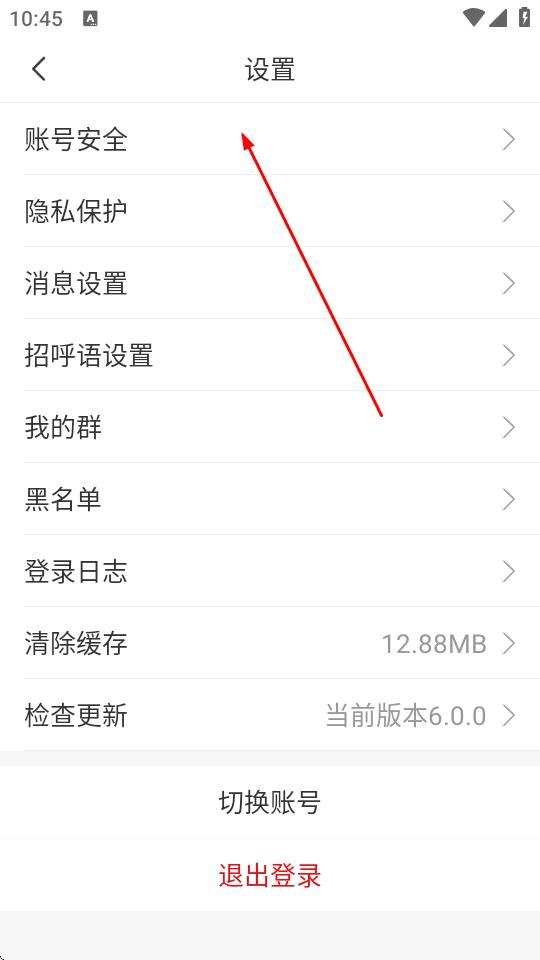 3、在設(shè)置頁面,點擊賬號安全選項。