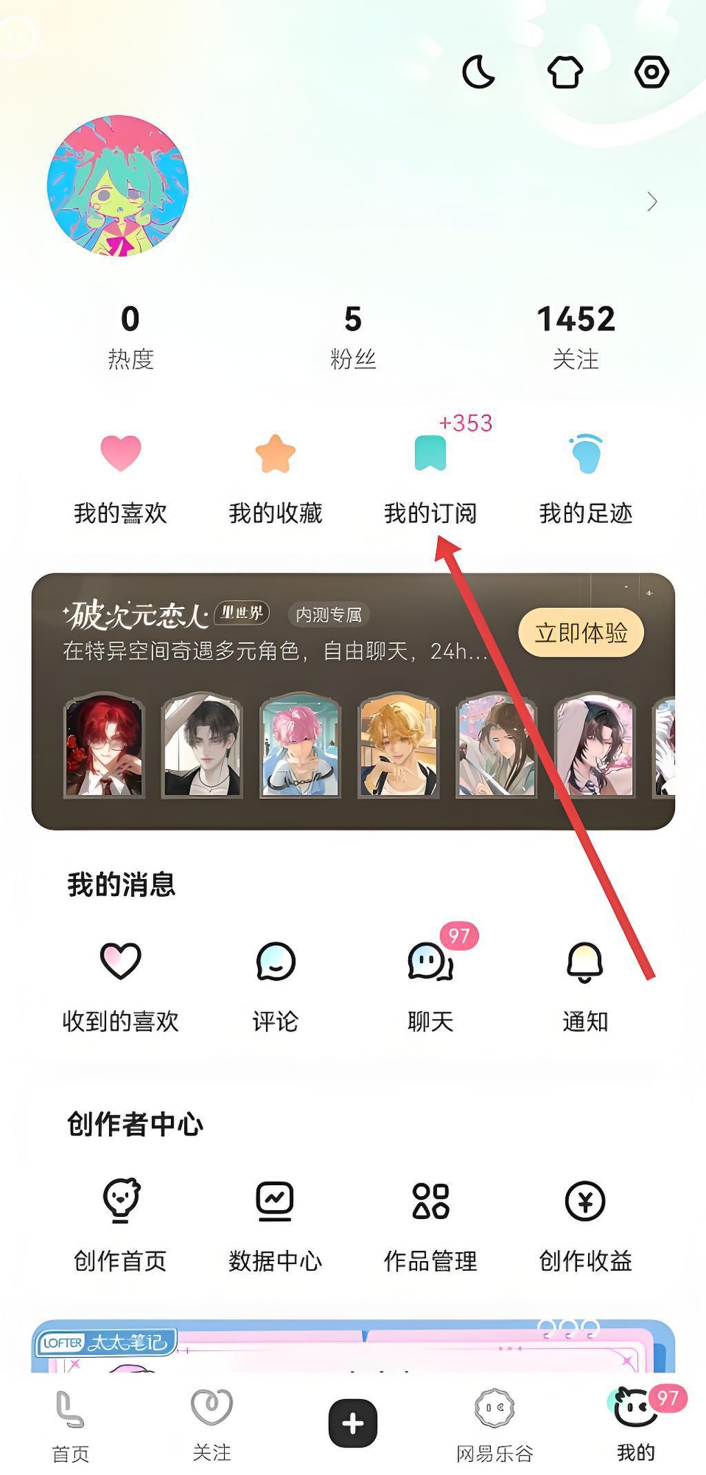 1、打開LOFTER APP,進入我的個人中心頁面,點擊我的訂閱選項,進入已訂閱的合集列表。