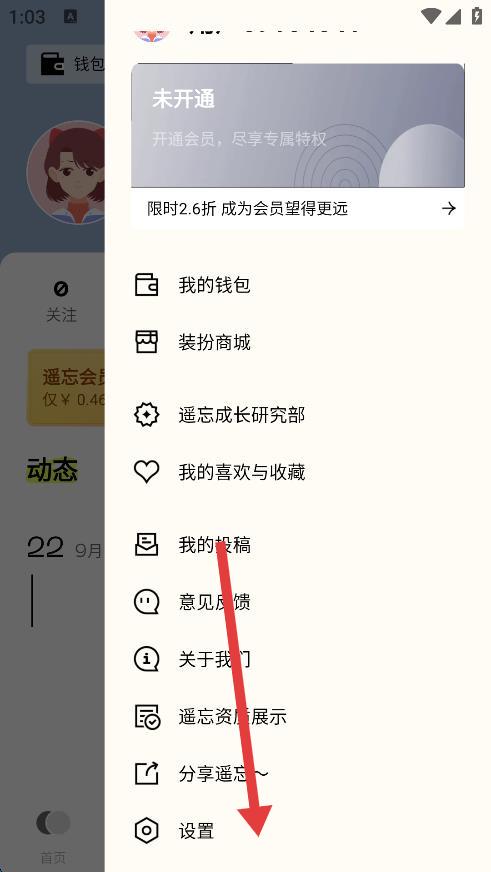 3、在彈出的側(cè)邊菜單中,找到并點擊設(shè)置選項。