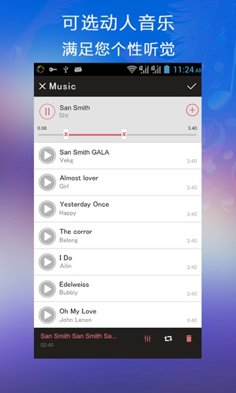 加入你喜愛(ài)的歌曲作為配樂(lè),支持自定義添加哦,