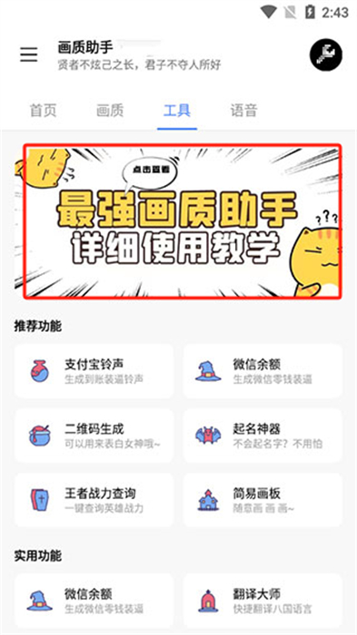 1、進入到軟件內(nèi)后,玩家需要點擊屏幕上方的【工具】按鈕;