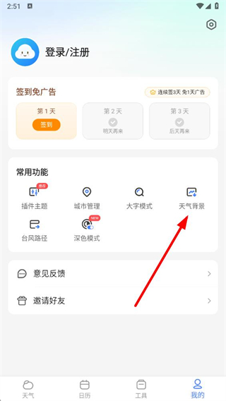 2、在個人中心頁面的常用功能板塊中,點擊天氣背景選項。